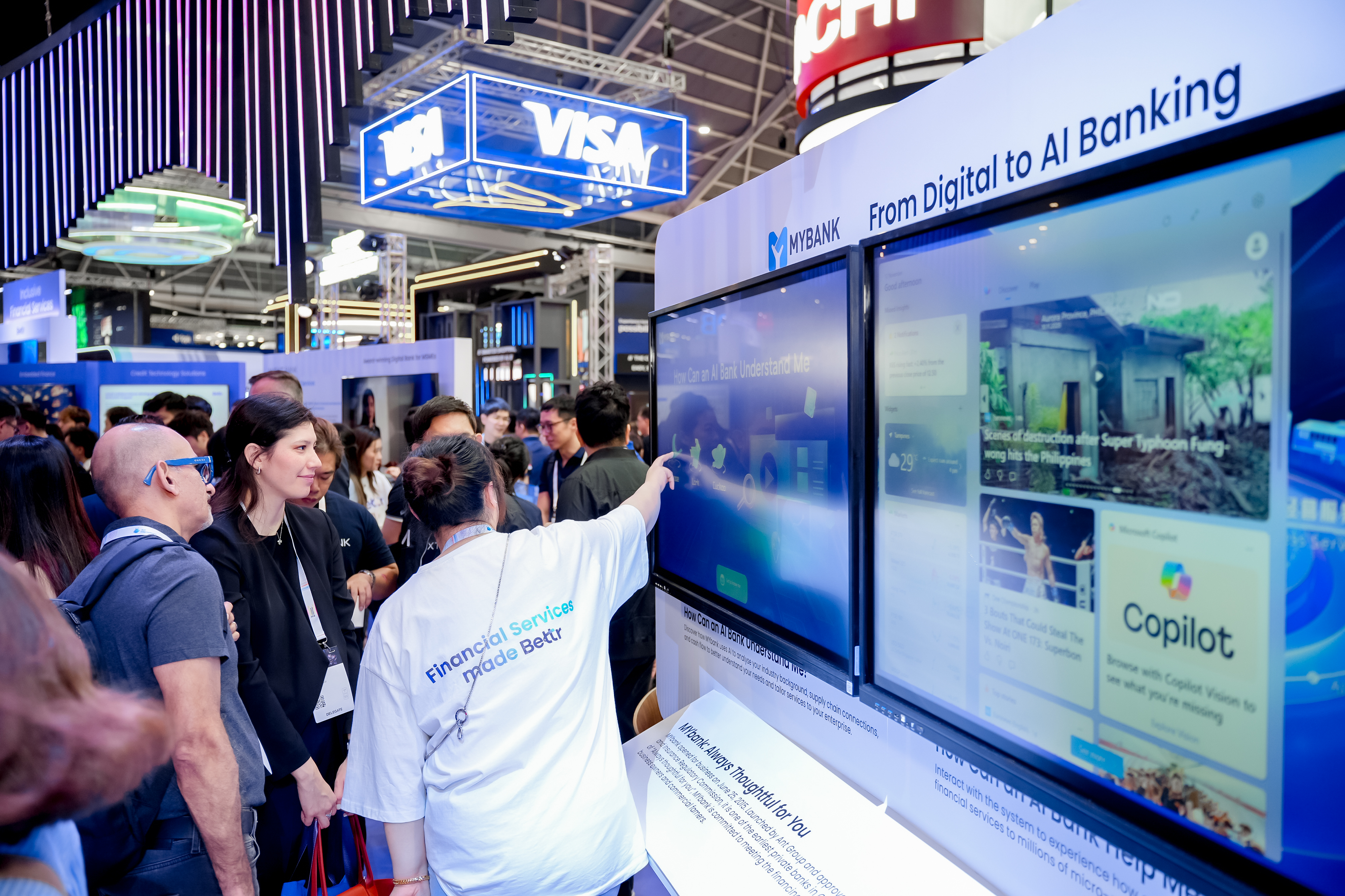 展会现场,与网商银行同台的包括汇丰、三井住友、大华等知名银行,以及微软等科技巨头。