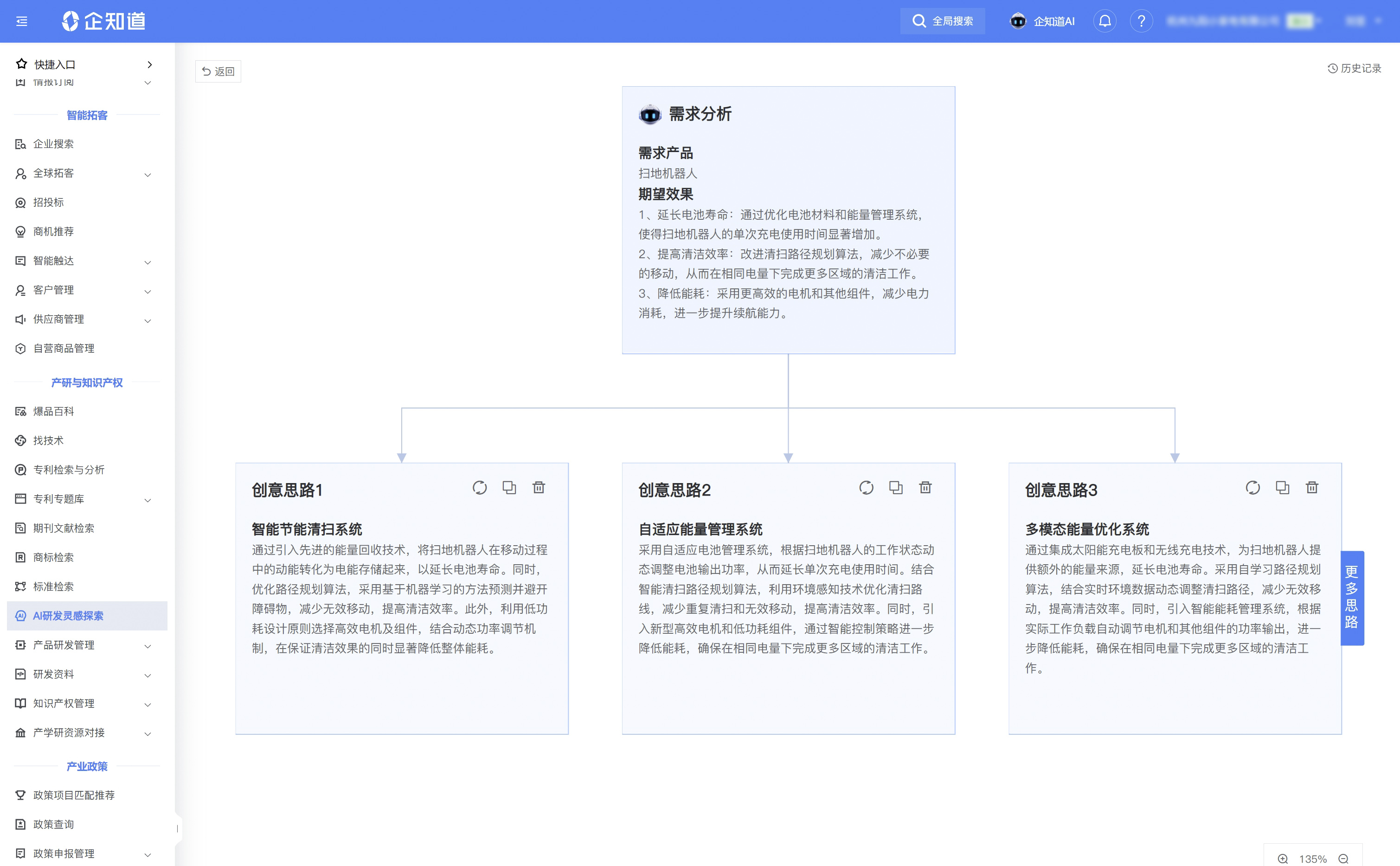 科创空间助力企业智能提炼爆款产品卖点,一键解构技术方案,AI探索研发路径,辅助确定研发方向。