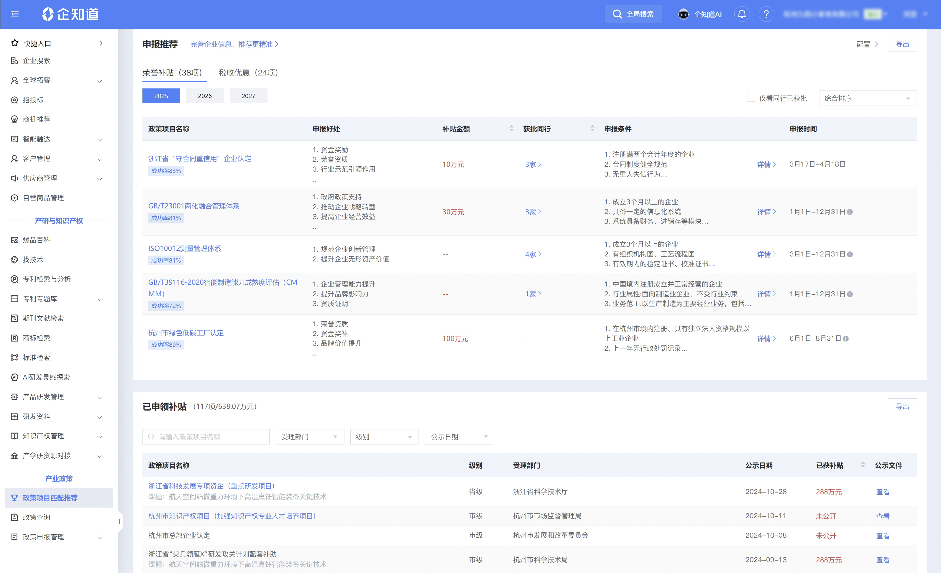科创空间结合历年政策趋势和同行补贴申报案例,为企业精准匹配补贴和退税项目,实时订阅最新政策,量身定制申报方案,便捷管理资质证书,帮助企业及时获取资金支持、享受税收优惠。