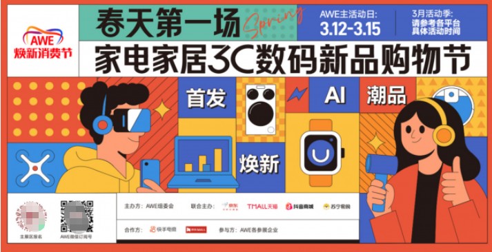 2026年3月12-15日,以“AI科技、慧享未来”为主题的2026年中国家电及消费电子博览会(AWE2026)将以“一展双区”的全新格局,在上海新国际博览中心与上海东方枢纽国际商务合作区两地同步举行。作为国家扩大内需战略和消费品以旧换新政策的积极响应者和坚定践行者,AWE主办方中国家用电器协会于AWE2026期间再度联合京东、天猫、抖音商城、苏宁易购、小红书、快手等主流平台,集中开展多场大力度促消费活动,推动家电焕新消费,助力行业实现“十五五”良好开局。