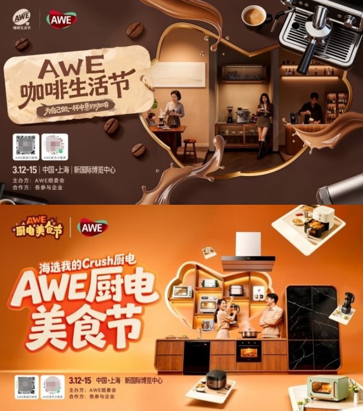 2026年是“十五五”开局之年。“十五五”时期,内需市场的平稳增长对我国家电行业高质量发展具有重要意义。为支持国家消费品以旧换新政策的持续实施,进一步发挥家电行业在扩内需、优供给、惠民生方面的重要作用,中国家用电器协会将再度联合京东、天猫、抖音商城、苏宁易购、小红书、快手等主流平台,在AWE2026期间举办AWE焕新消费节,以“春天第一场家电家居3C数码新品购物节”为口号,推动在AWE平台首发的家电家居3C数码潮品焕新消费。此外,中国家用电器协会还将携手AWE参展商,于展会期间在上海新国际展区举办AWE咖啡生活节、AWE厨电美食节和AWE直播之夜等重磅促消费活动,其中AWE咖啡生活节将以“为自己,做一杯钟意的咖啡”为口号,推动“家中现做咖啡”成为一种新潮生活方式,让专业咖啡体验走进更多中国家庭,助力咖啡文化与品质生活深度融合;AWE厨电美食节将以“海选我的Crush厨电”为口号,让现场观众通过场景化互动体验,找到适合自己生活方式的厨电,建立起与厨电新品的情感连接;作为AWE主办方全力打造的新IP,AWE直播之夜将于3月12、13日两晚在上海新国际展区现场上演,届时近千家参展企业将在同一时段开启全球规模最大的同场直播,将融汇最新科技的家电新品推介给全球消费者。